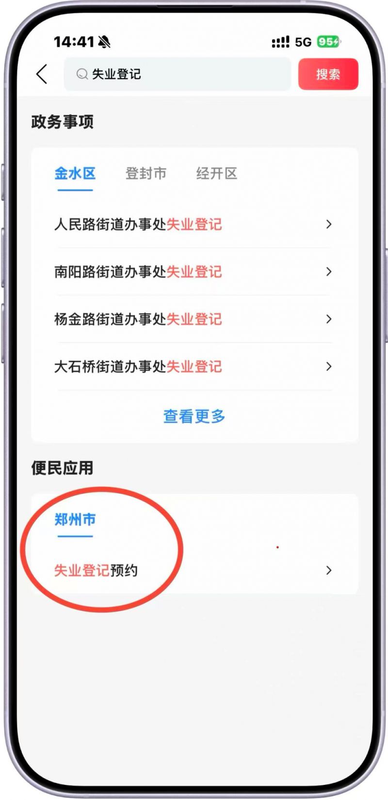 注:金水区/经开区/登封市的失业人员可以直接在郑好办APP上进行线上办理。