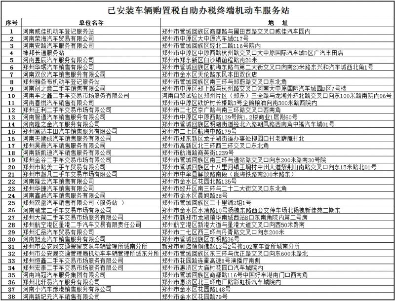 【导语】:郑州车辆购置税业务办理可以到已安装车辆购置税自助办税终端设备的机动车服务站办理,具体见正文。